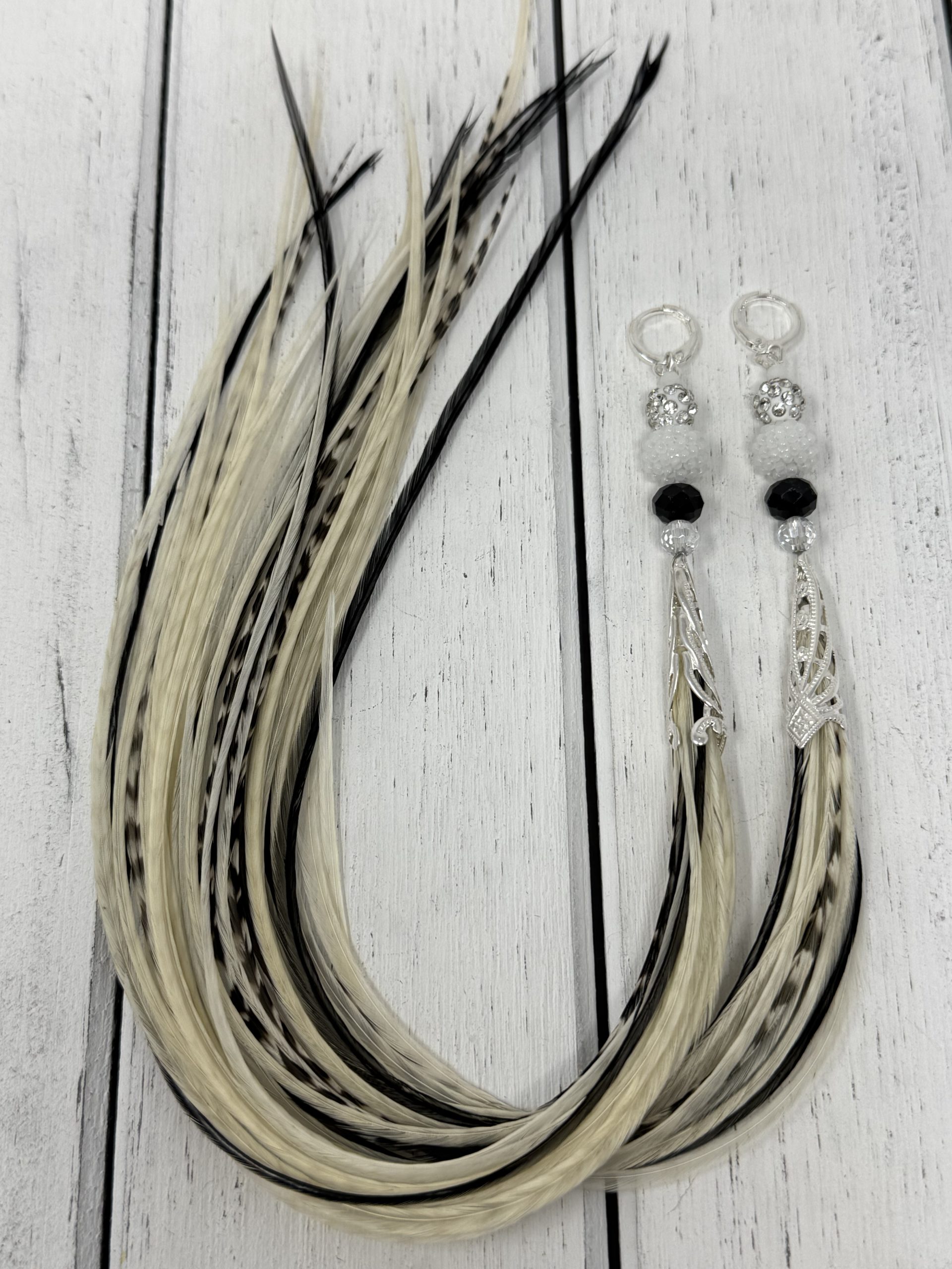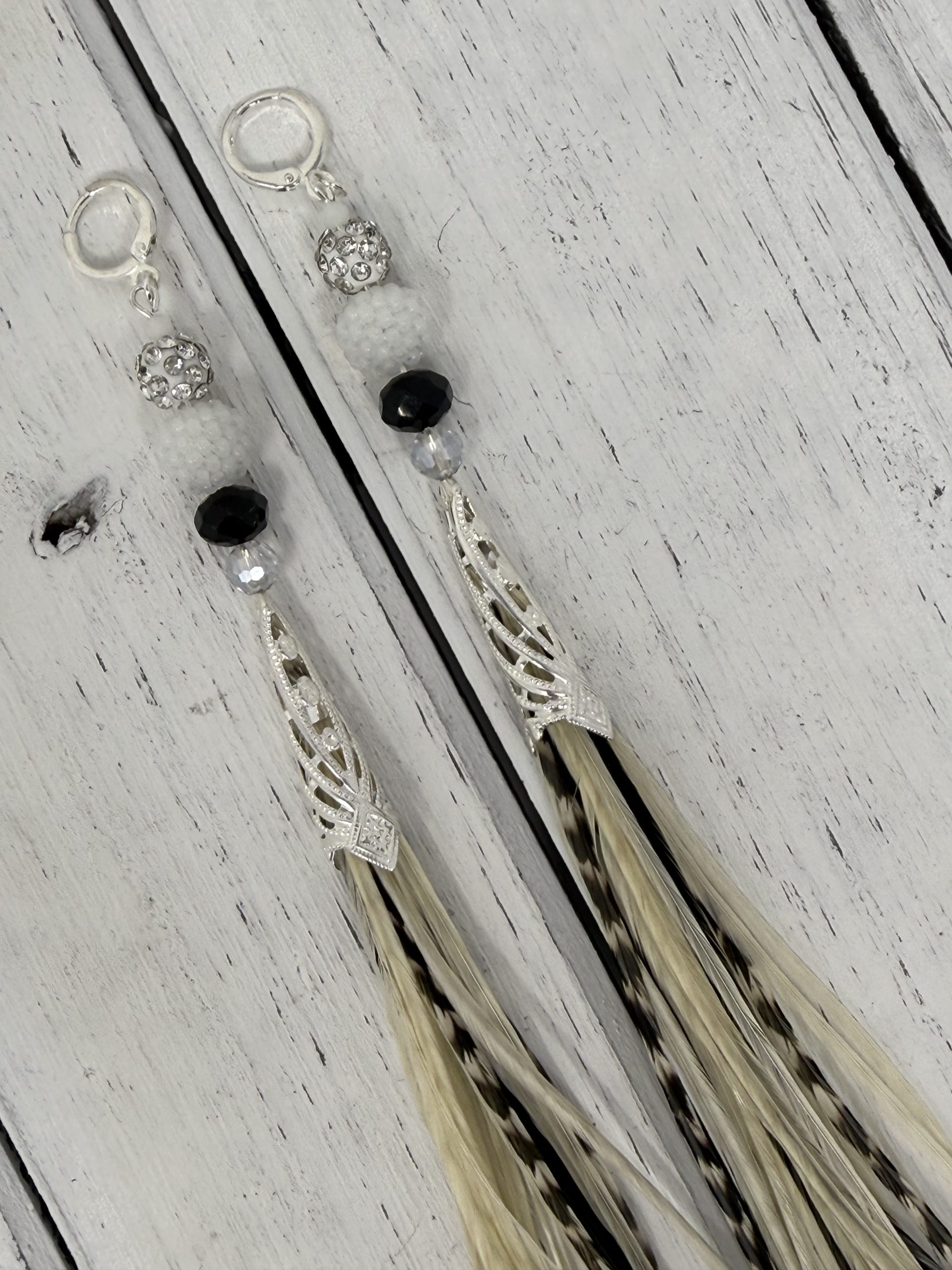 Fly Away pairs are very light weight. 10mm beaded ball to match the hand dyed feathers. A simple, yet very elegant pair.