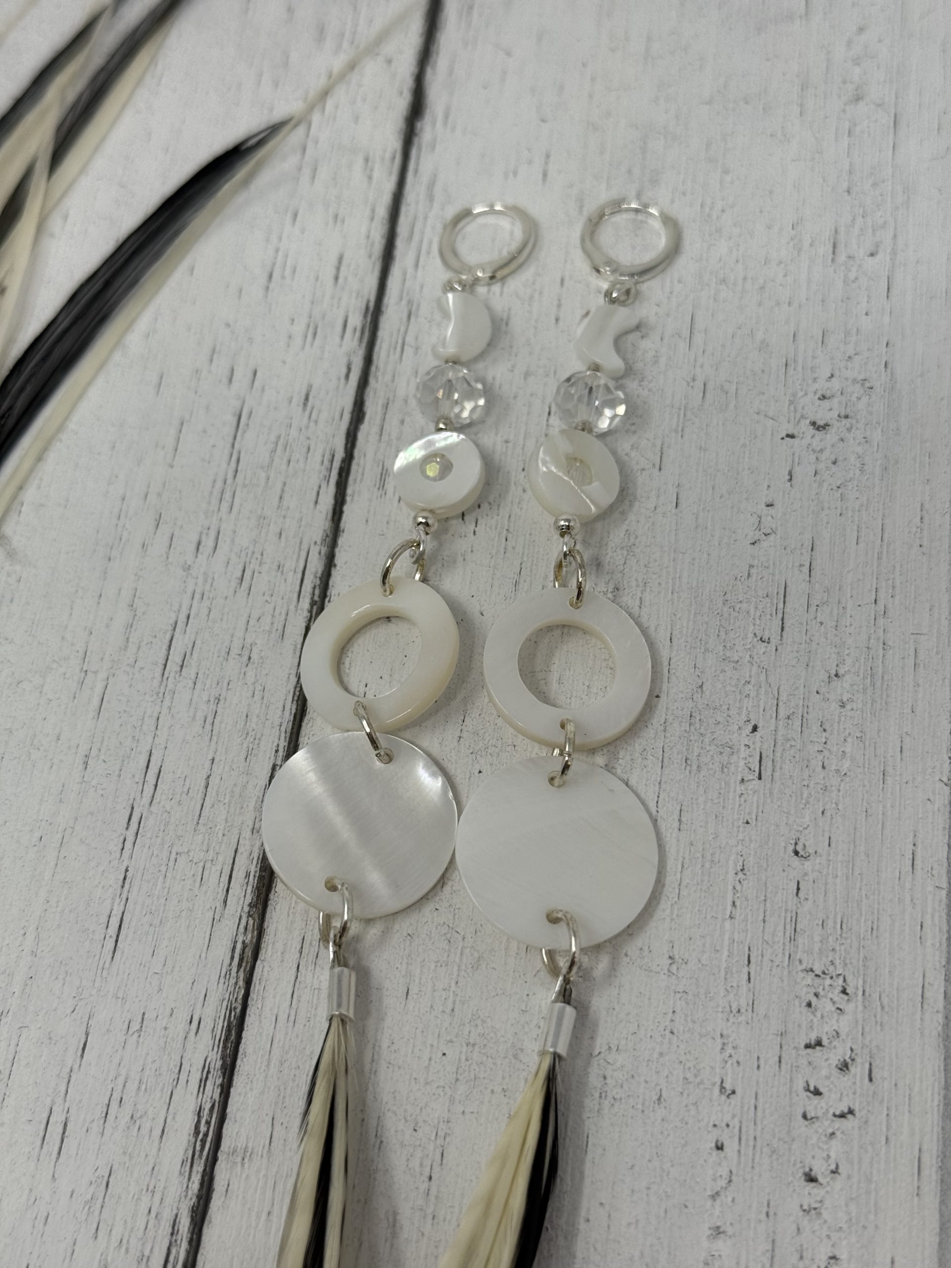 These sets are made for the dangle. The all natural feathers flow elegantly with the shells.