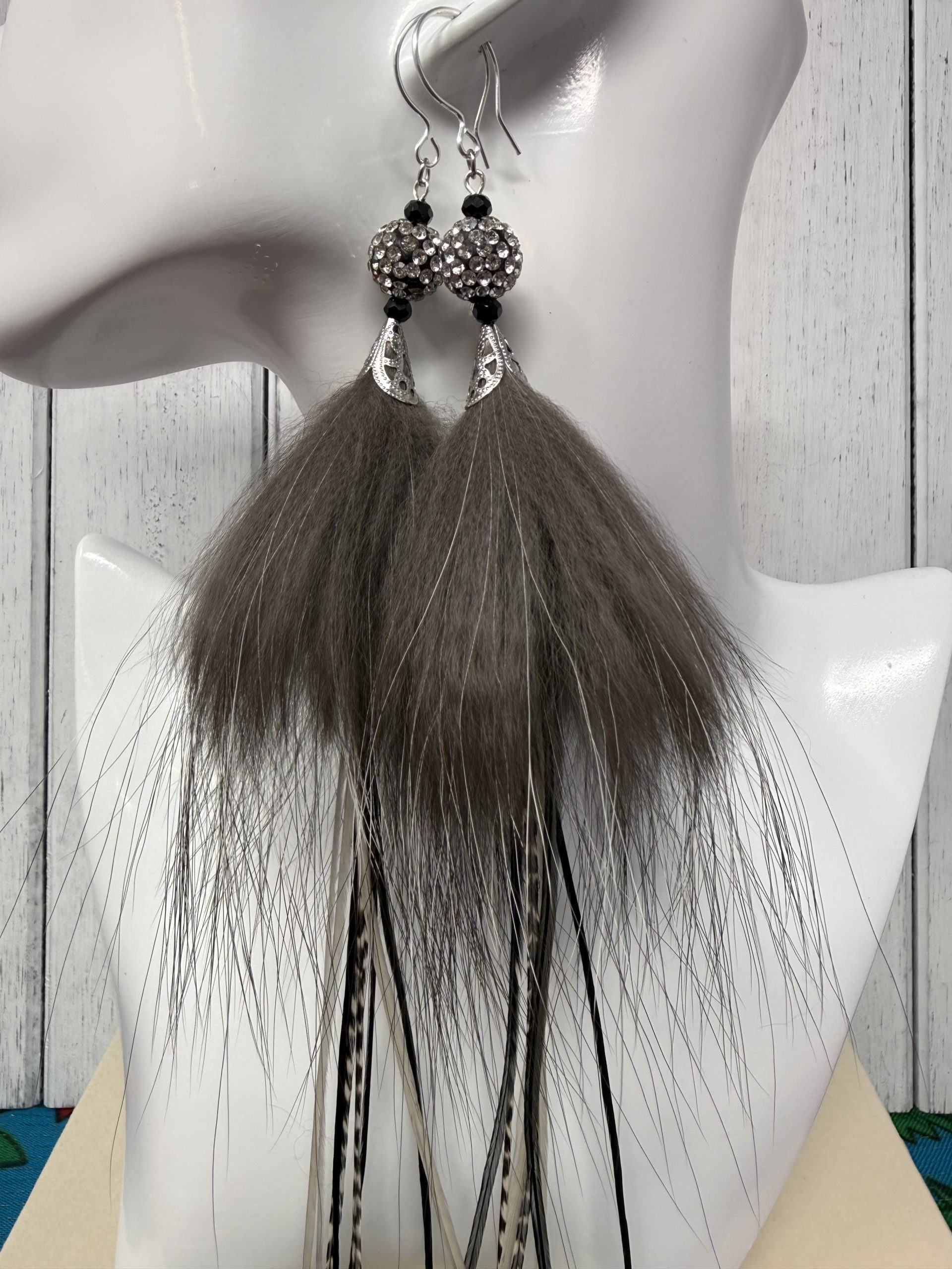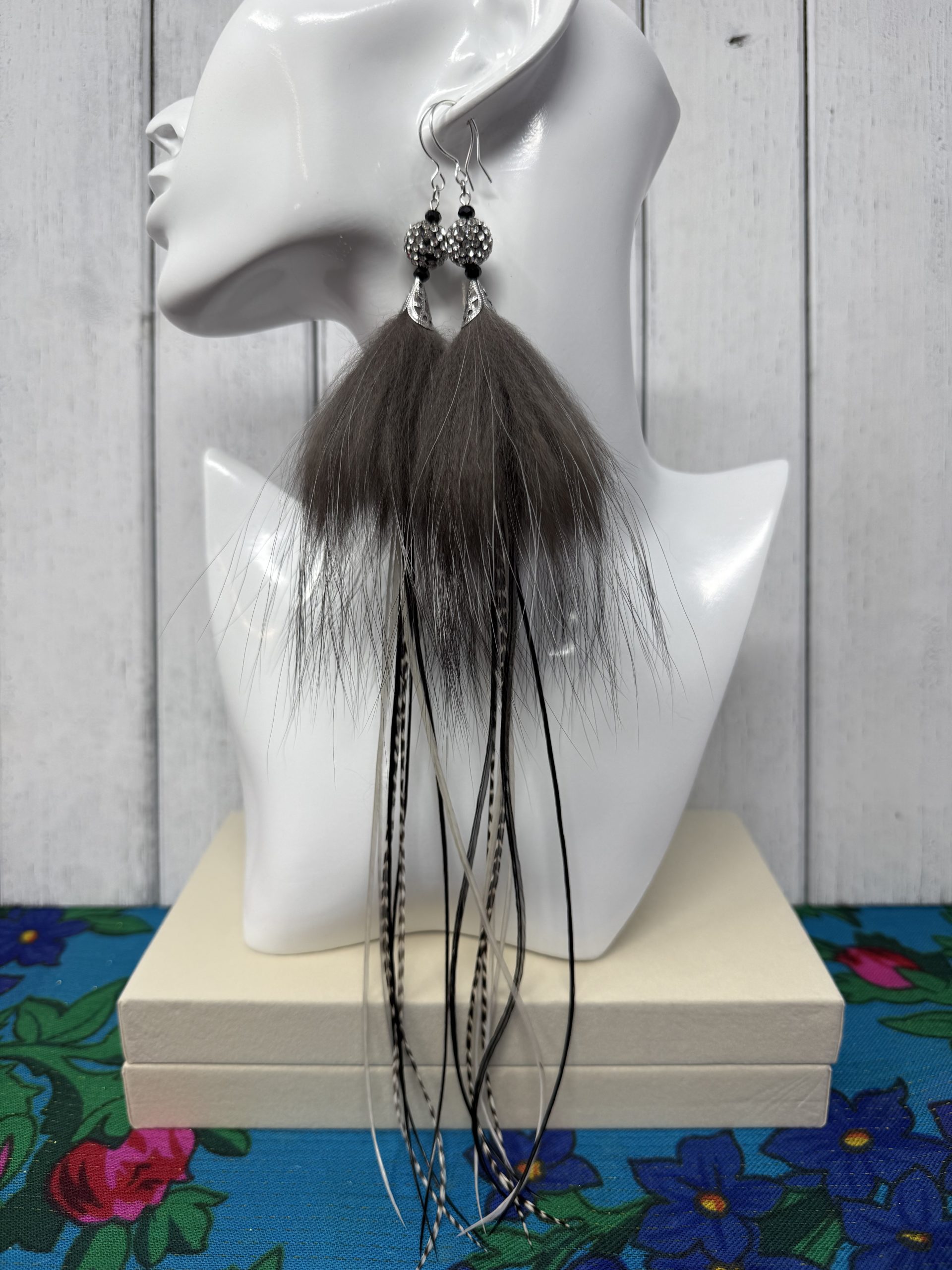 These cute little sets are very lightweight. Silver Fox Fur, Feathers in NATURAL, & Rhinestones added for that extra Sparkle. Measuring 11-13 Inches in Length. All natural set, to match your everyday wear.